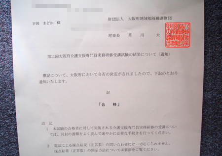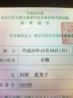 三島様この度はケアマネらくらく合格勉強法に出会えたおかげで無事に合格することが出来ました!
